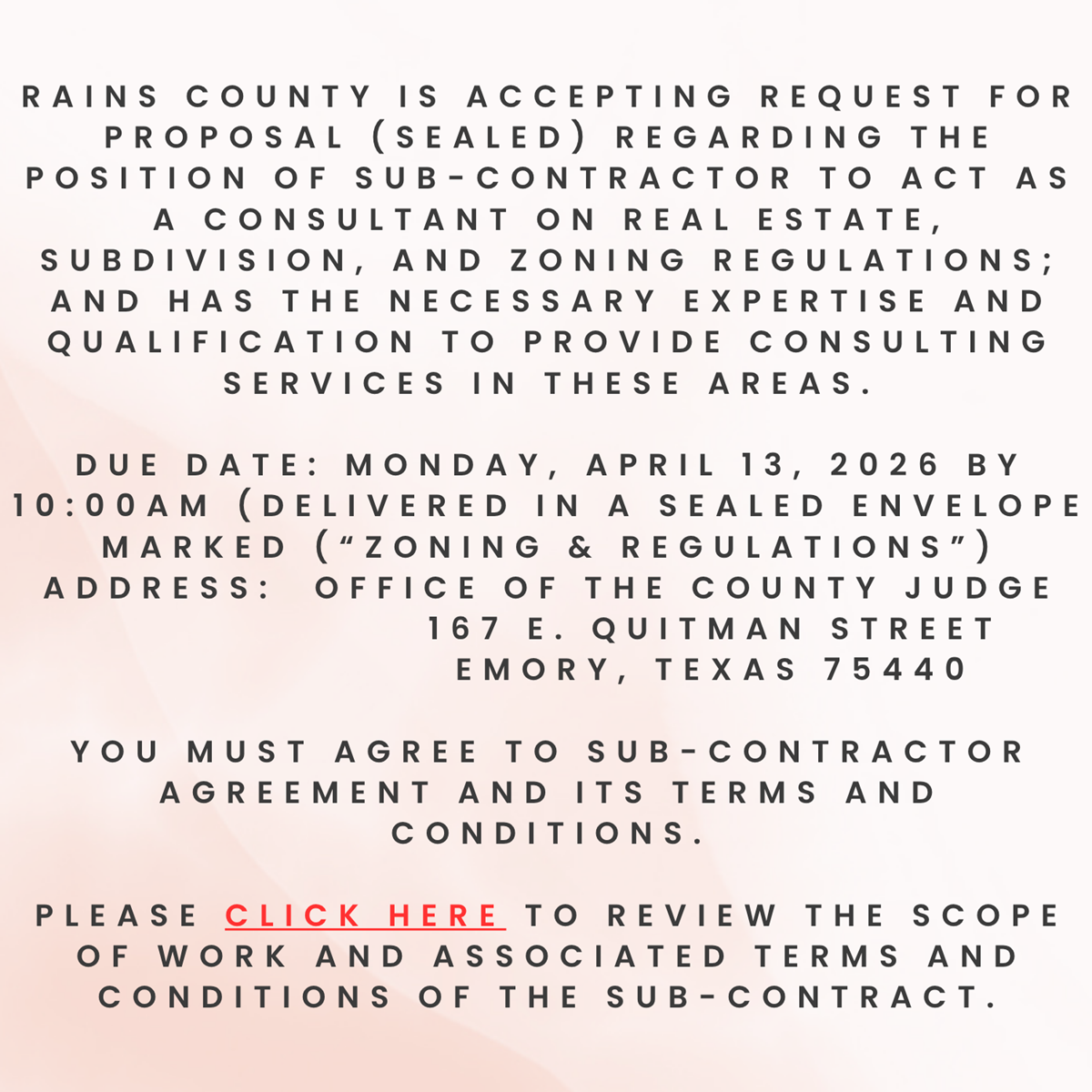 RAINS COUNTY SMALL SERVICES CONTRACT (Bid Date 4/13/2026)